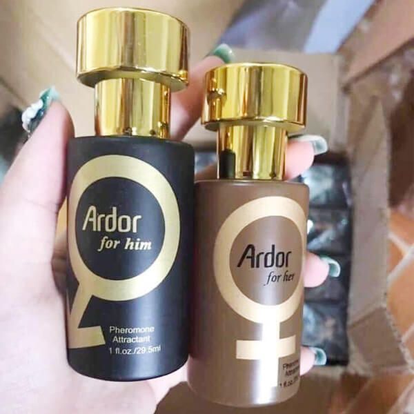 nước hoa PMODA pheromone màu vàng và đen Là sản phẩm cao cấp phù hợp cho cả nam và nữ, với hai phiên bản thiết kế niềm đam mê dành cho anh ấy (màu đen) và niềm đam mê dành cho cô ấy (màu vàng).